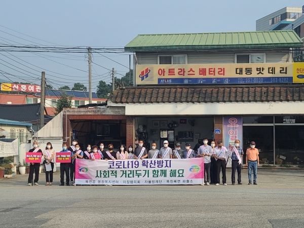 목천읍행정복지센터 직원 및 이장 60여명이 참여한 이번 캠페인은 차량 통행량이 많은 오전 8시 출근시간에 전개했으며 사회적 거리두기 및 방역수칙 준수를 홍보했다.