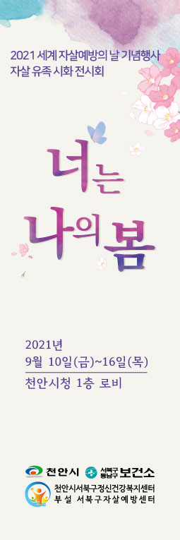[세종타임즈] 천안시와 천안시 서북구정신건강복지센터가 주관하는 유족 추모시화 전시회 ‘너는 나의 봄’이 오는 10일부터 16일까지 천안시청 1층 로비에서 열린다.