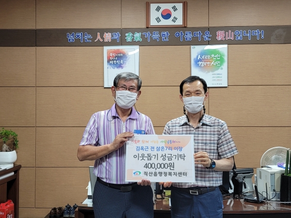 [세종타임즈] 천안시 직산읍 삼은7리 전 이장인 김옥근 씨가 추석 명절을 맞아 지난 17일 어려운 이웃에 전달해달라며 후원금 40만원을 기탁했다.