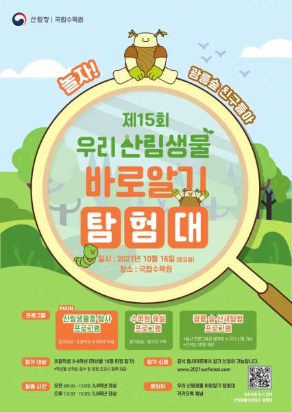 참가한 학생들은 흥미진진한 광릉숲 탐험을 통해 우리 산림생물 지킴이상, 국립수목원장상, 어린이과학동아상 등에 도전할 수 있다.