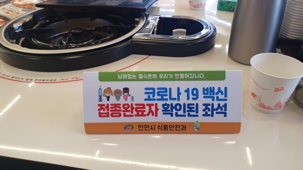 이번 안내 팻말은 예방접종 완료자가 포함된 테이블을 대상으로 한 불필요한 민원을 사전에 차단할 것으로 기대된다.
