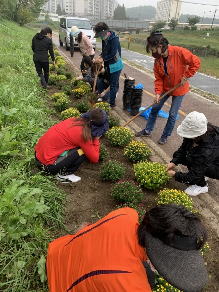 용곡동 일대 천안천변은 산책하거나 운동하기에 좋아 주민들이 많이 찾는 곳으로 산책로 150여 미터의 구간에 가을 국화 약 600여 본을 식재했다.