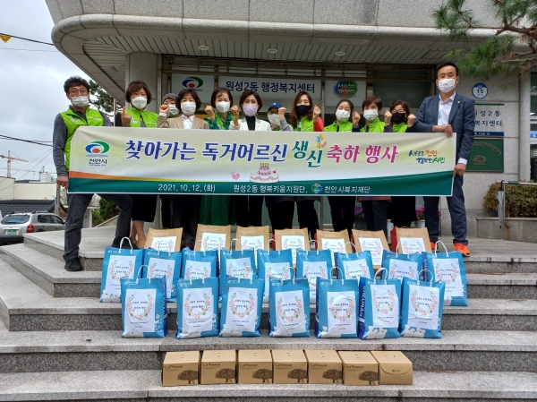[세종타임즈] 천안시 원성2동 행복키움지원단이 지난 12일 홀로 사시는 어르신들을 모시고 생신잔치를 열어 드리는 행사를 진행했다.