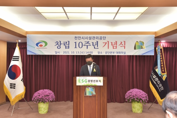 [세종타임즈] 천안시시설관리공단이 지난 13일 공단 본부 대회의실에서 창립 10주년 기념행사와 더불어 ‘ESG 경영’을 선포했다.