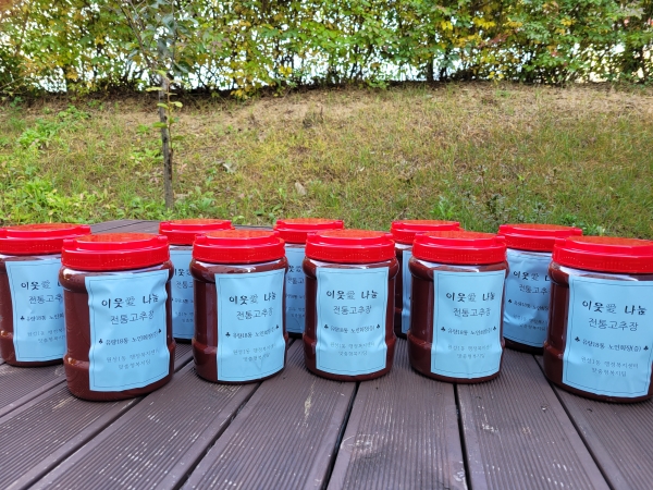 고추장 재료로 쓰인 고춧가루, 찹쌀, 메주는 직접 농사지은 것으로 고운빛깔의 고추장으로 정성을 담아 맛깔스럽게 만들어졌으며 홀몸어르신 등 복지사각지대에 놓인 이웃에 전달할 예정이다.