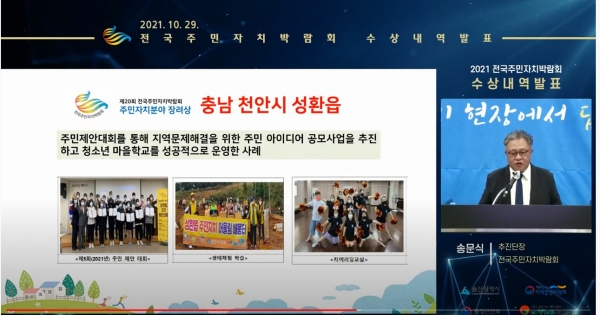 [세종타임즈] 천안시 성환읍 주민자치회가 지난달 29일 온라인으로 개최된 제20회 전국주민자치박람회 본선에서 장려상을 수상했다.