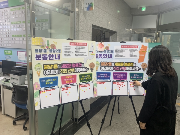 [세종타임즈] 천안시 불당동이 오는 15일자로 불당1·2동으로 분동됨에 따라 새로운 슬로건을 주민스스로 결정할 수 있도록 11월 1일부터 14일까지 2주간 패널을 제작해 투표를 진행 중이다.