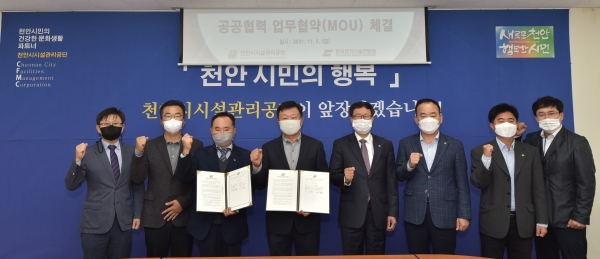 [세종타임즈] 천안시시설관리공단이 한국전기기술인협회 충청남도회와 공단 본부 중회의실에서 공동협력 업무협약을 체결했다고 9일 밝혔다.