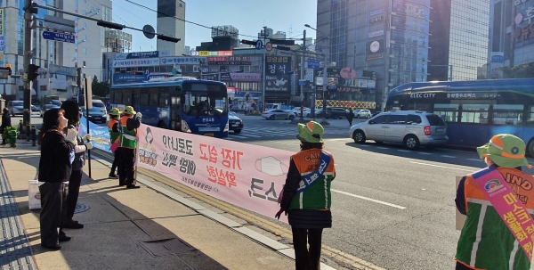 또한 마스크 미착용 시민들에게 마스크를 배포했다.