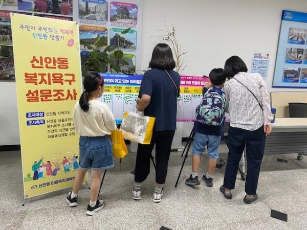 설문 결과 본인이 겪고 있는 어려움 중 취업, 자녀양육, 문화여가 문제가 제일 큰 어려움이라고 답변했으며 신안동 주민 중 22%는 큰 문제가 없고 대신 저소득계층에 도움을 줬으면 좋겠다는 의견이 가장 높았다.