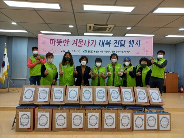 [세종타임즈] 천안시 원성2동 행복키움지원단이 지난 30일 지역 내 취약계층 20가구를 대상으로 내복과 양말을 전달하는 ‘따뜻한 나눔, 행복한 이웃’ 나눔 행사를 개최했다.