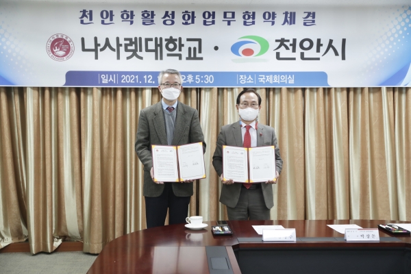 이번 협약식은 천안시와 나사렛대의 상호 유기적인 협력체계를 구축해 천안학의 지속적 발전을 위해 마련됐다.