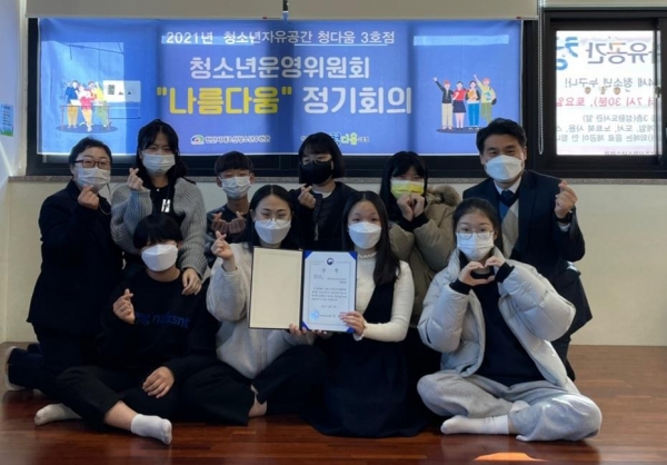 [세종타임즈] 천안시태조산청소년수련관이 운영하는 천안시청소년자유공간 청다움 3호점이 2021년 청소년어울림마당·동아리 우수사례에서 비공연 동아리 부문 최우수에 선정돼 여성가족부 장관상을 받았다.