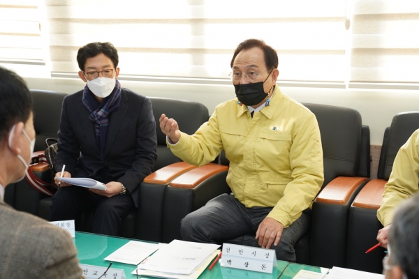 박상돈 시장은 지난 6일 천안월봉중학교에서 청소년 코로나19 방역 대책회의를 주재해 천안교육지원청 등과 최근 관내 초·중·고 학생의 코로나19 확진자 발생에 따른 대응 방안을 논의했다.