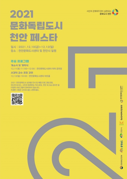‘2021 문화독립도시 천안 페스타’는 10일부터 12일까지 3일 동안 천안문화도시센터를 중심으로 열린다.