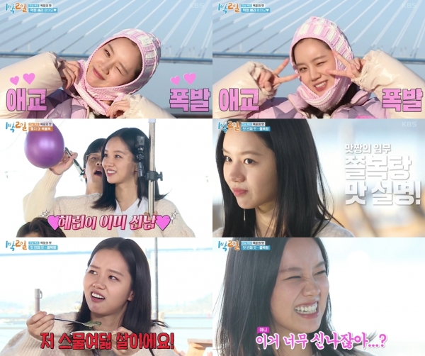 어제 방송된 '1박 2일'에 게스트로 출연한 혜리는 쫄복탕을 건 승부에서 폭풍먹방부터 온 몸을 던진 게임 참여까지 '1박 2일' 멤버들과 눈부신 케미를 보여주며 이날 분당 최고 시청률 17.8%를 기록했다.