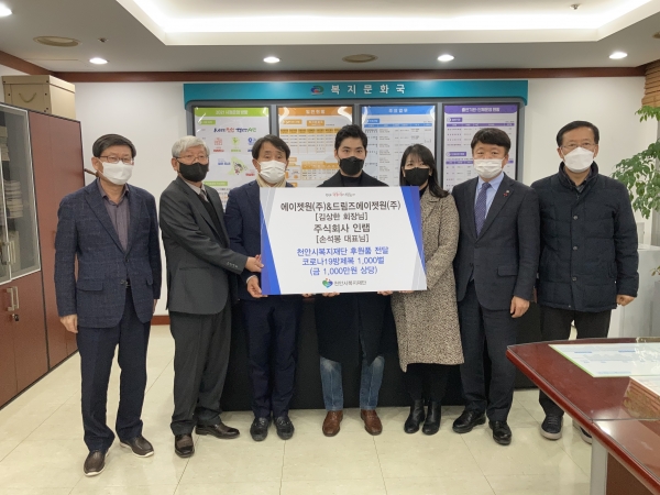 [세종타임즈] 에이젯원와 ㈜인랩이 지난 14일 천안복지재단을 통해 코로나19 감염예방을 위한 방제복 1,000벌을 기부했다.