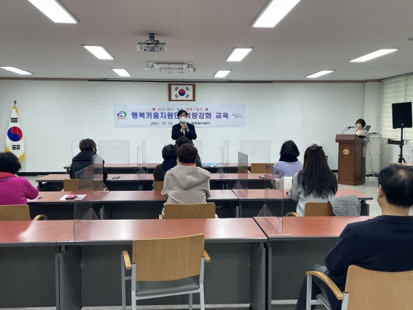 이번 교육은 복지사각지대 발굴, 지역사회 자원 개발 및 조직화 등 마을 복지 최일선에 있는 행복키움지원단의 역량을 강화하기 위해 마련됐으며 대화와 소통 능력 향상, 감정노동 관리 등을 주제로 진행했다.