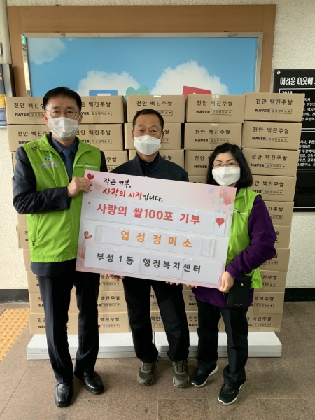 한익희 부성1동장과 정학규 행복키움지원단장은 “수년째 어려운 이웃들을 위해 나눔을 실천하고 계신 업성정미소 김재영 대표에게 진심으로 감사드리며 정성과 사랑이 담긴 백미를 지역 내 도움이 필요한 주민들에게 잘 전달하겠다”고 답했다.