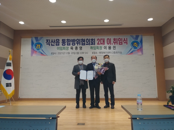 이번 이·취임식은 육종영 전임회장이 방위협의회 회장직을 이임하고 이용진 신임회장이 취임하는 자리로 체온체크, 손소독, 방역패스 등 코로나19 방역지침을 철저히 준수해 진행됐다.