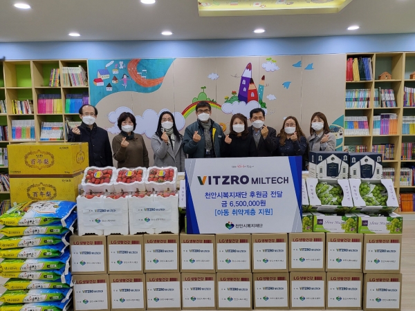 [세종타임즈] ㈜비츠로밀텍은 지난 21일 천안시 지역아동센터 아동들을 위해 천안시복지재단에 후원 물품을 전달했다.