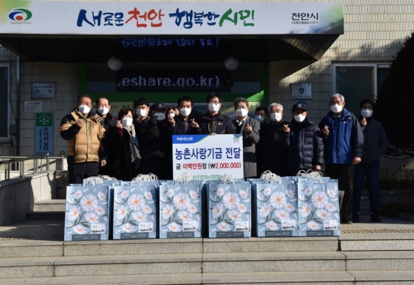 [세종타임즈] 천안시 북면은 동천안농협과 북면 이장협의회가 지난 27일 행정복지센터에서 취약계층을 위한 생필품 선물세트를 후원했다고 밝혔다.