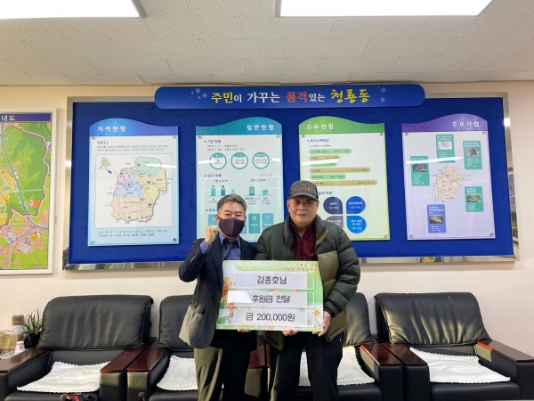 [세종타임즈] 천안시 청룡동 주민 김종호 씨가 지난 3일 지역 내 어려운 이웃을 돕기 위한 성금 20만원을 청룡동에 기부했다.