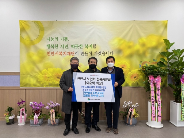 이번 후원금은 청룡동 관내 노인들의 생활 향상을 위해 힘쓰는 노인회장 2명에게 전달될 예정이다.