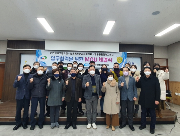 [세종타임즈] 천안시 청룡동주민자치위원회는 지난 21일 천안제일고등학교와 지역사회 발전과 학생들의 학업 지원을 위해 업무협약을 체결했다고 밝혔다.