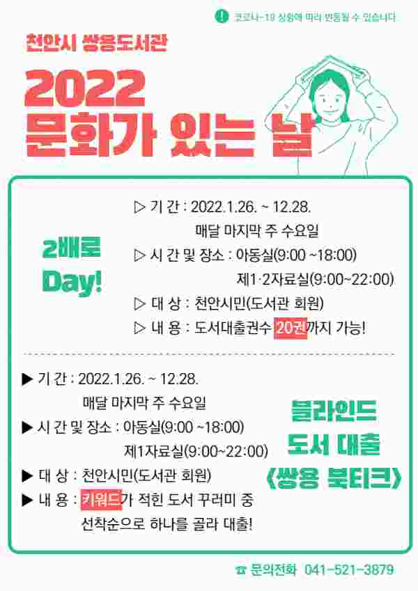 [세종타임즈] 천안시쌍용도서관은 2022년 ‘문화가 있는 날’ 행사를 운영한다고 밝혔다.