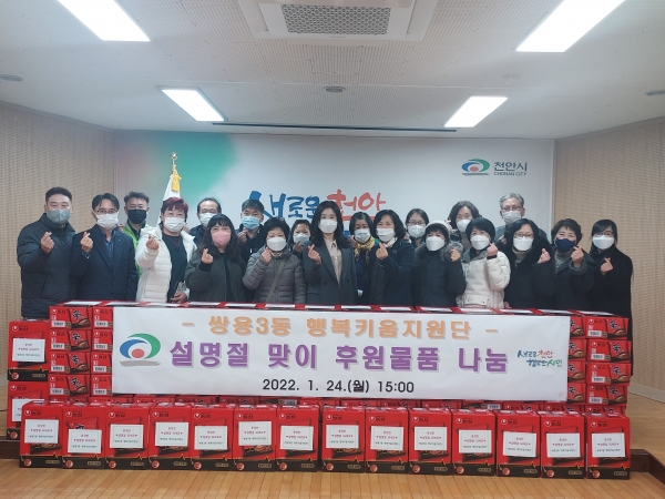 [세종타임즈] 천안시 쌍용3동 행복키움지원단은 지난 24일 2022년 1분기 정기회의를 진행하고 설 명절맞이 후원물품 전달식을 진행했다.