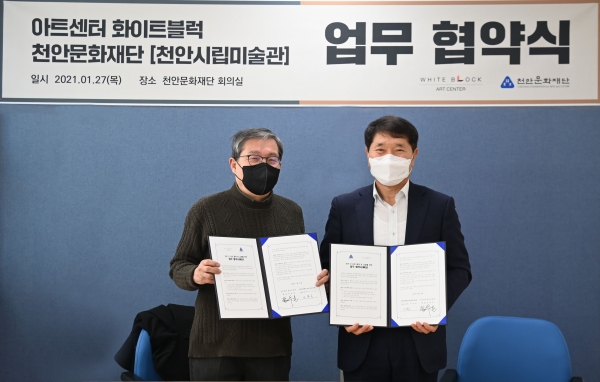 [세종타임즈] 천안문화재단 천안시립미술관은 지난 27일 아트센터 화이트블럭과 지역 미술문화 발전을 위한 업무협약을 체결했다고 밝혔다.