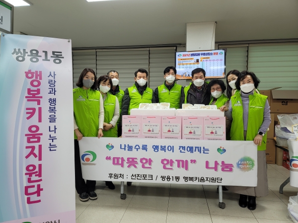 이병희 쌍용1동 행복키움지원단장은 “추운 겨울 혼자 사는 어르신들이 따뜻하게 식사할 수 있도록 후원해주신 김종운 대표에게 감사드린다”고 말했다.
