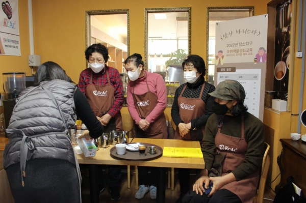 이번 주민역량강화교육은 주민협의체 가입자 8명을 대상으로 마법의 커피 공방에서 실시되고 있다.