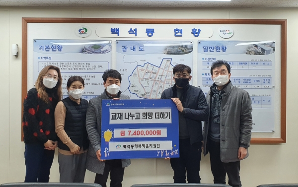김용광 백석동 행복키움지원단장은 “우리 지역 학생들이 건강하고 당당하게 생활하길 바란다”며 “앞으로도 소외된 이웃에 지속적으로 관심을 기울이겠다”고 전했다.