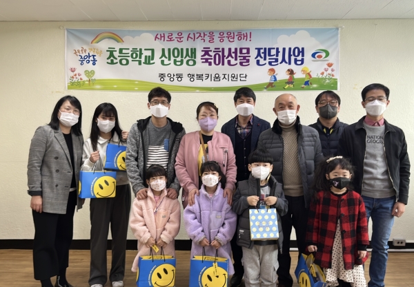 이날 중앙동 행복키움지원단은 ‘초등학교 신입생 입학 축하선물 전달사업’에 따라 관내 거주 중인 초등학교 신입생 15명에게 20만원 상당의 상품권을 전달했다.