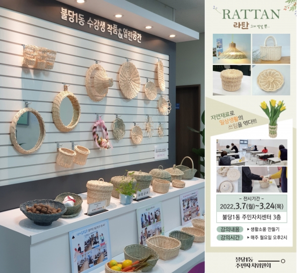 [세종타임즈] 천안시 불당1동주민자치위원회가 24일까지 주민자치센터 3층 로비에서 문화교실 라탄공예 수강생들의 작품을 전시한다.