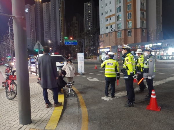 [세종타임즈] 파주시는 지난 10일 운정신도시 목동동 산내 사거리 인근에서 한국교통안전공단, 파주경찰서와 합동으로 야간 단속을 진행했다.