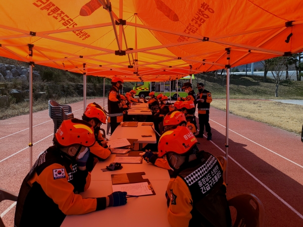 훈련은 지난 29일 홍성군장애인스포츠센터에서 소방본부 통제단원 30명이 참석한 가운데 코로나19 방역 수칙을 준수해 진행했다.