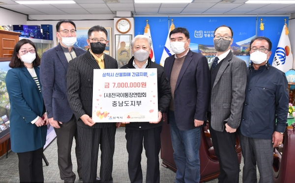 박종환 충남지부장과 김천하 수석지부장, 박인철 감사, 이조형 사무처장은 30일 삼척시청을 방문해 “산불피해의 조속한 복구와 이재민 지원에 써달라”며 충남 지역 이장들이 모은 성금 700만원을 기부했다.