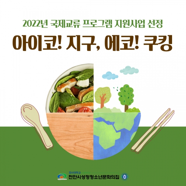 천안시 성정청소년문화의집은 ‘아이코 지구, 에코 쿠킹’을 주제로 청소년SDGs 실천과제 수립, 요리를 통한 문화교류, 제로웨이스트 캠페인 등 다양한 활동을 진행할 예정이다.