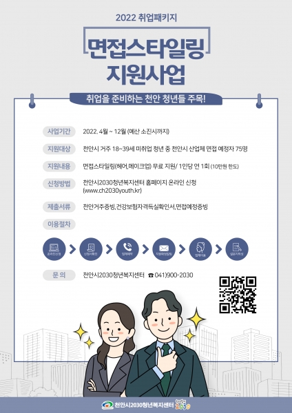 [세종타임즈] 천안시는 천안시2030청년복지센터가 취업 사진과 면접 스타일링을 지원해 신청자를 모집한다고 밝혔다.