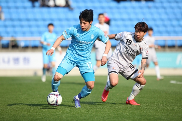 전반 25분 화성의 김민식이 좋은 기회에서 슈팅으로 이어봤지만, 득점으로 이어지지는 않았다.