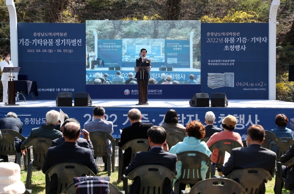 양승조 지사와 최응천 국외소재문화재재단 이사장, 이기하 묘지 기증자인 이한석 한산 이씨 정익공파 문중 대표 등이 참석한 가운데 연 이날 행사는 국외소재문화재 제자리 찾기 활동 보고 감사패 수여, 박물관 재개관 및 정기특별전 커팅식 등의 순으로 진행했다.