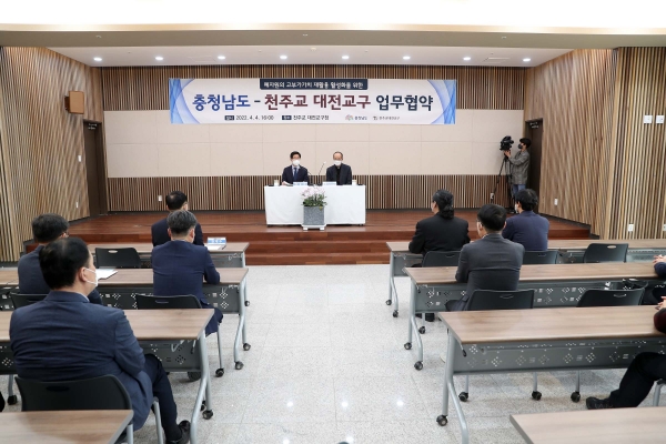 양승조 지사와 김종수 천주교 대전교구장 등이 참석한 가운데 연 이번 행사는 교구청 안내, 추진 배경 설명, 협약 서명 등의 순으로 진행했다.