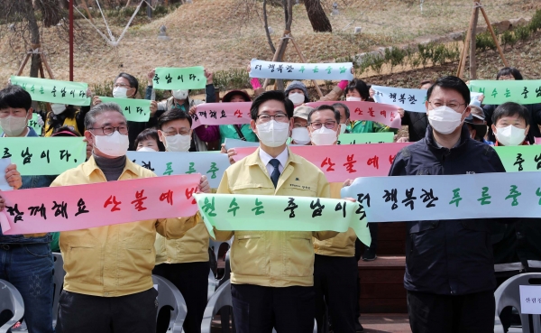 [세종타임즈] 충남도는 5일 제77회 식목일을 맞아 공주시 소재 환경성건강센터 인근 치유의 숲에서 산불 예방을 위한 ‘4월 안전점검의 날’ 캠페인을 전개했다.