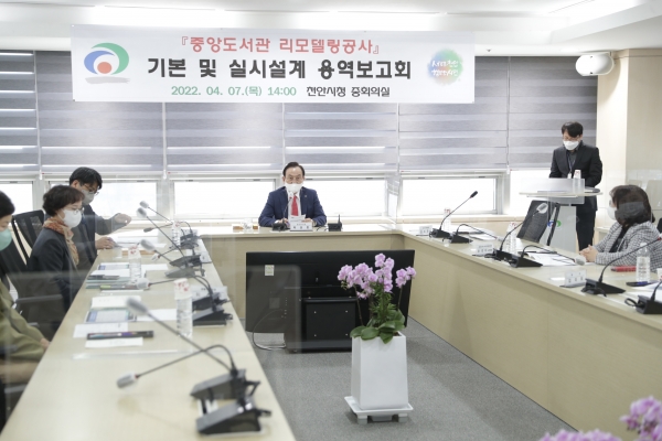 [세종타임즈] 천안시는 지난 7일 시청 중회의실에서 박상돈 천안시장과 부시장을 비롯한 지역작가와 지역주민 등 도서관 운영위원이 참석한 가운데 중앙도서관 리모델링사업‘기본 및 실시설계 용역보고회’를 개최했다.