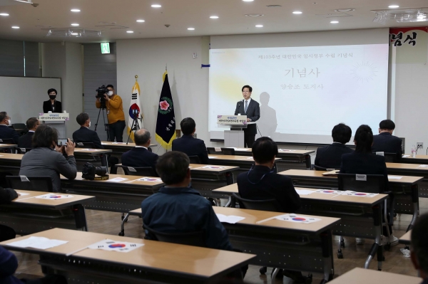 이 자리에서 양 지사는 “제103주년 대한민국 임시정부 수립을 기념하는 오늘 순국선열들의 삶을 기리고 숭고한 가치와 희망을 철저히 계승하겠다”며 “나라의 독립과 번영을 위해 투쟁한 자랑스러운 대한민국과 충남 103년의 역사를 되새기고 새로운 미래 100년 이정표를 세워 ‘더 행복한 충남, 대한민국의 중심’을 함께 만들어 가길 기대한다”고 말했다.