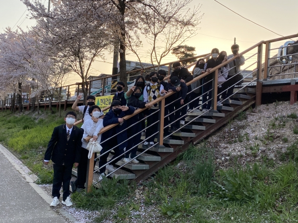 이날 청소년들은 원성천 주변 벚꽃과 개나리 등 만개한 꽃들을 배경으로 삼삼오오 모여 사진을 찍으며 신선한 봄기운을 만끽하는 시간을 가졌다.