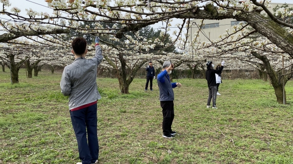 [세종타임즈] 천안과학산업진흥원은 지난 18일 직산읍 소재 매봉농원에서 배꽃 인공수정을 위한 일손 돕기 봉사활동을 펼쳤다.